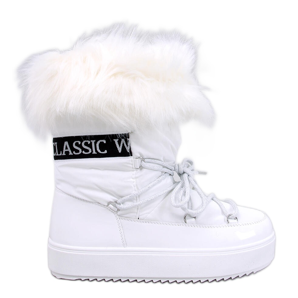 Um design simples e elegante com bico redondo, salto baixo e sem estampas desnecessárias tornam os sapatos universais, tornando-os adequados para vários estilos de inverno. As botas de neve Kendals White são fáceis de calçar - do tipo slip-on, o que as torna muito confortáveis para o uso diário.
