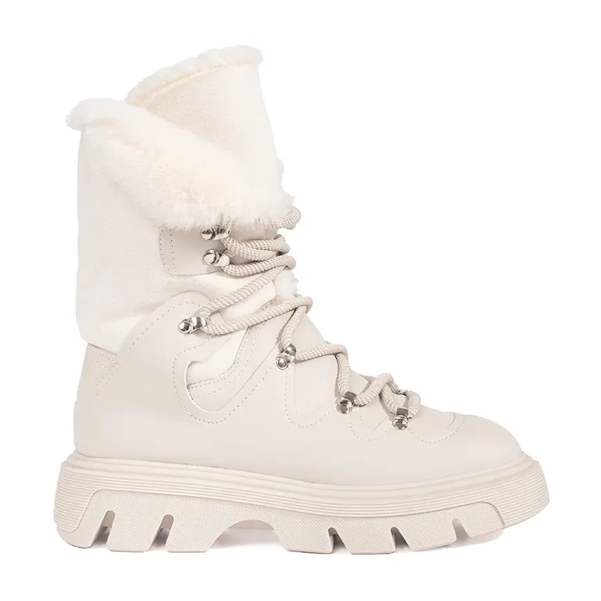 Detalhes: Seastar Botas de neve femininas bege com cadarço e pele na plataforma