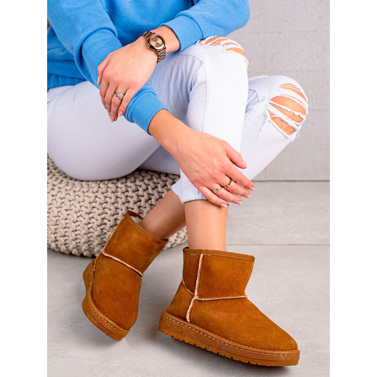 Confeccionadas em imitação de camurça de alta qualidade, as botas de neve não só têm estilo, mas também são isoladas, o que garante conforto térmico nos dias mais frios. A sola sintética com banda de rodagem garante boa aderência e estabilidade, o que é extremamente importante nas caminhadas de inverno.