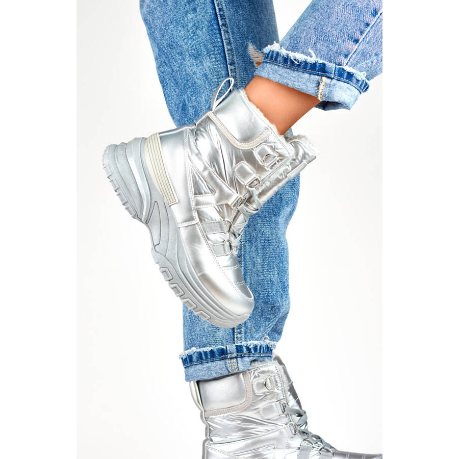 Inna marka Botas de neve femininas, botas prateadas brilhantes 22-PY16061SI prata