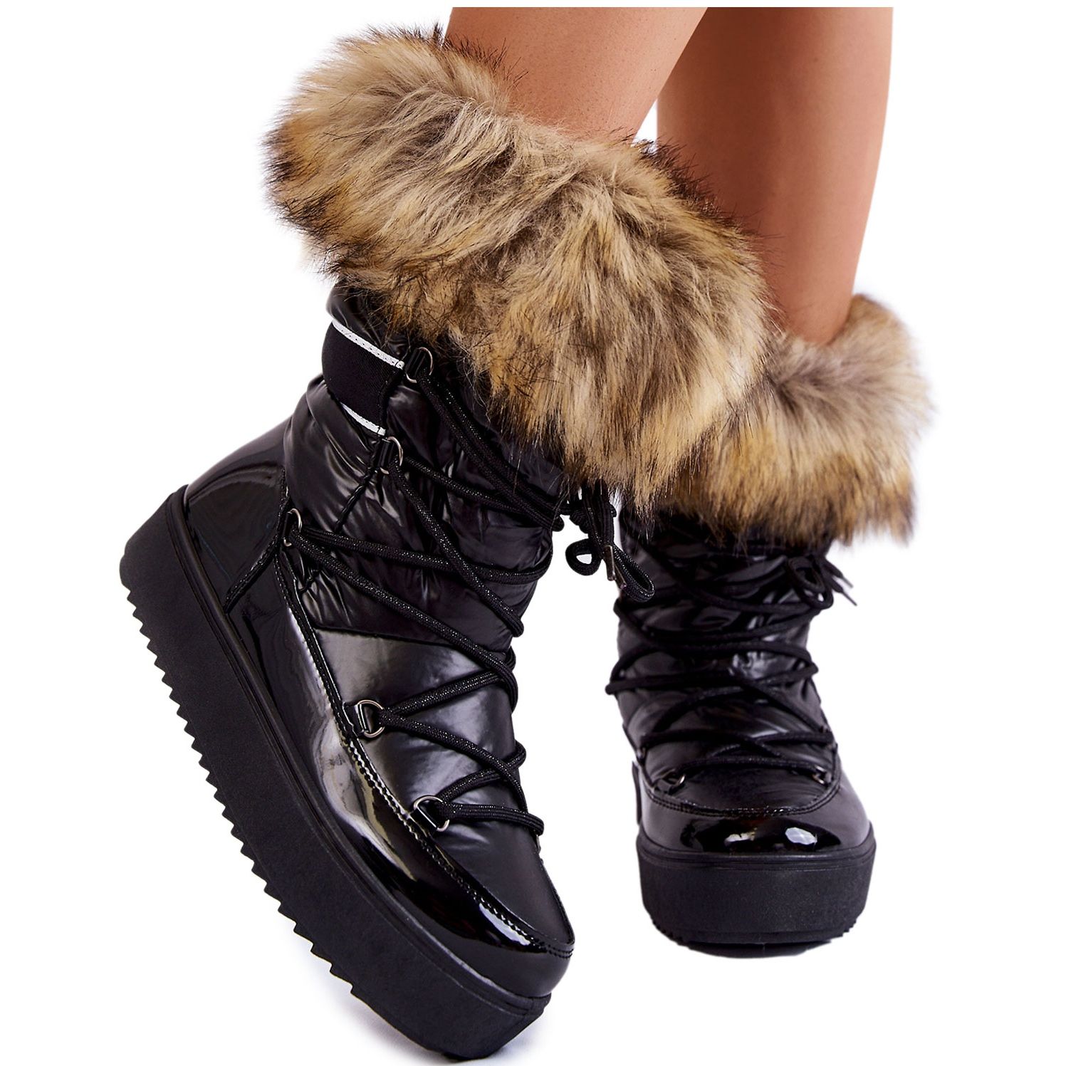 Detalhes: PA1 Botas de neve femininas com cadarço com pele preta Shannon preto