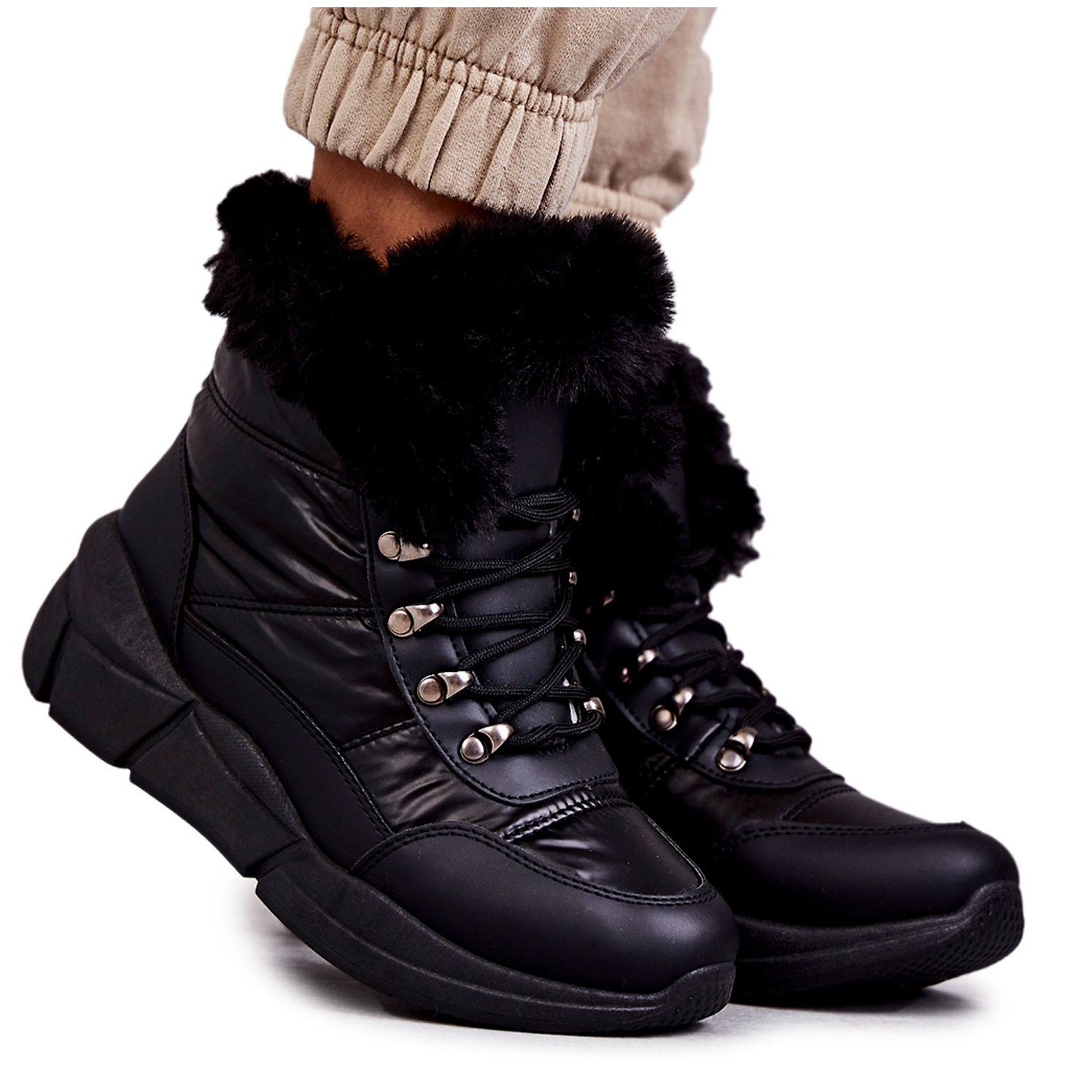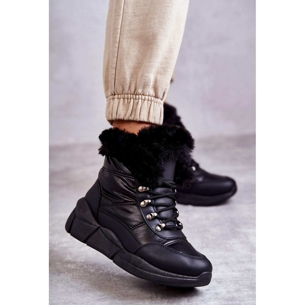 Detalhes: PE1 Botas de neve femininas com cadarço pretas Anna preto