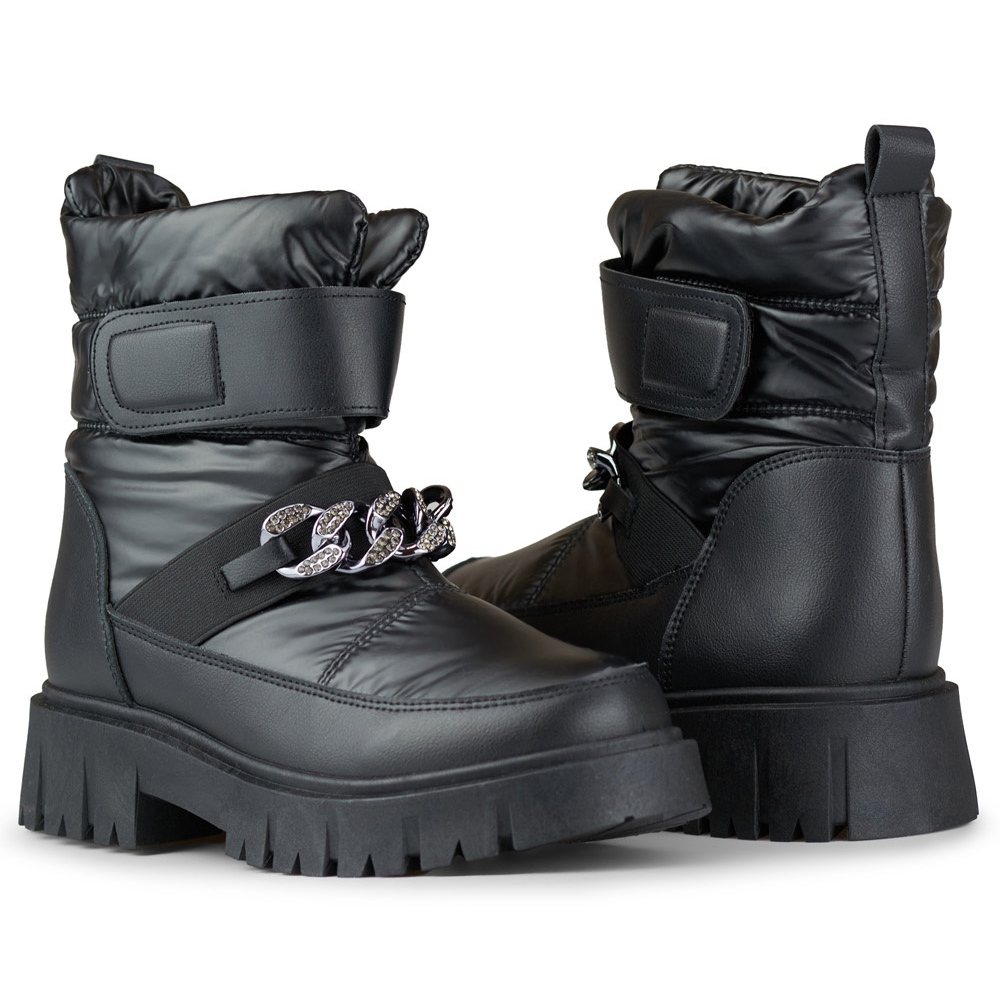 Botas de neve femininas - pretas com uma corrente