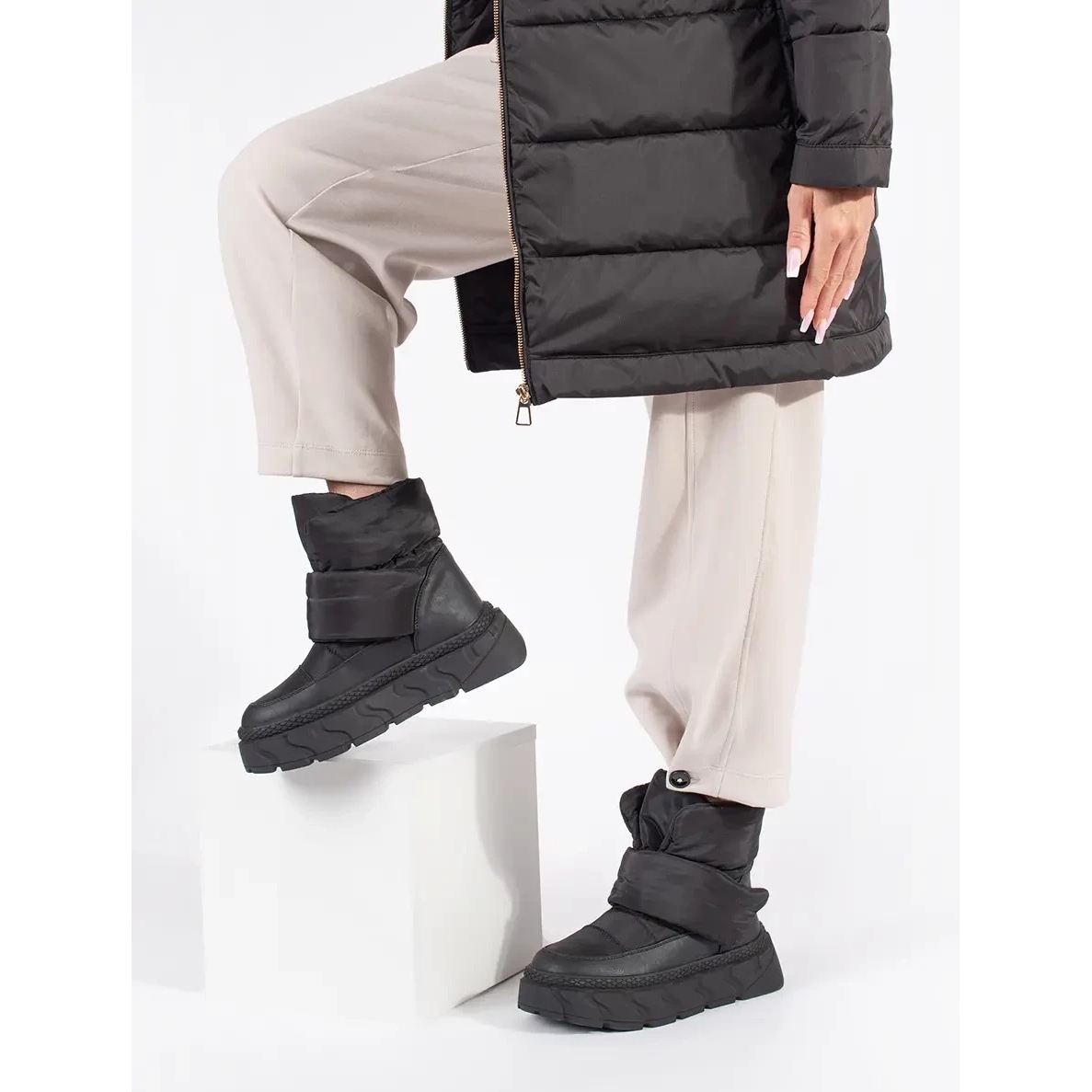 Graças à sua grossa plataforma de 6 cm de altura, essas botas de neve não apenas ficam ótimas na perna, mas também garantem estabilidade e amortecimento adequado durante cada etapa. Construído -in, salto macio e nariz completo garantem segurança e conforto, e o fecho inserido facilita a vestir e tirar os sapatos.