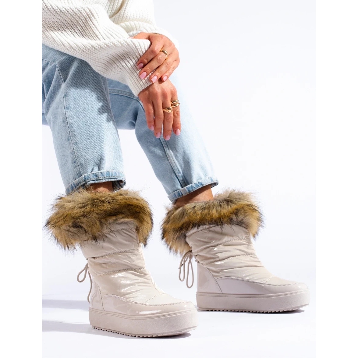 Detalhes: Botas de neve femininas Shelovet creme com pele dourado