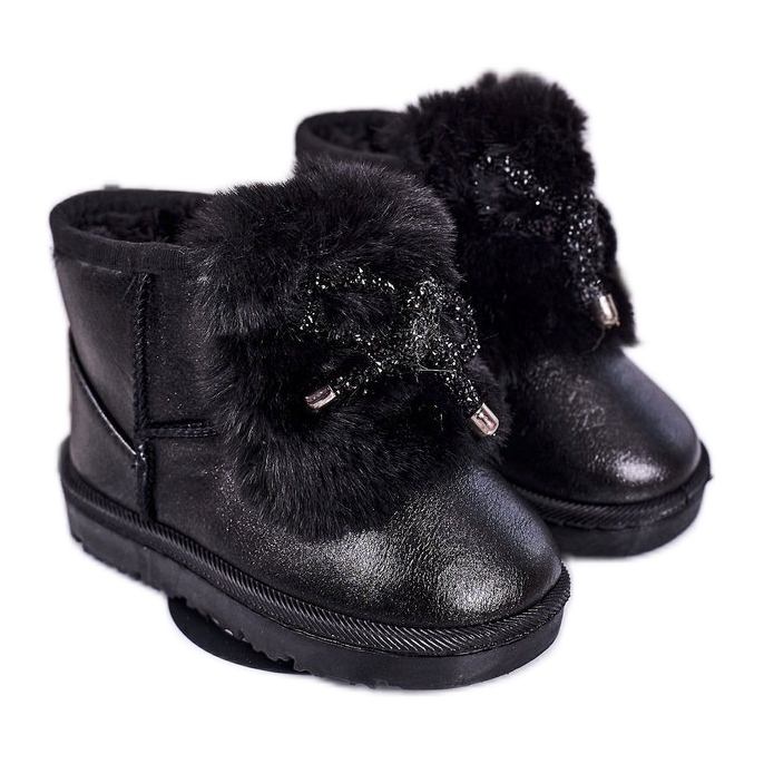 Detalhes: Botas de neve infantis com pele preta Aurora preto