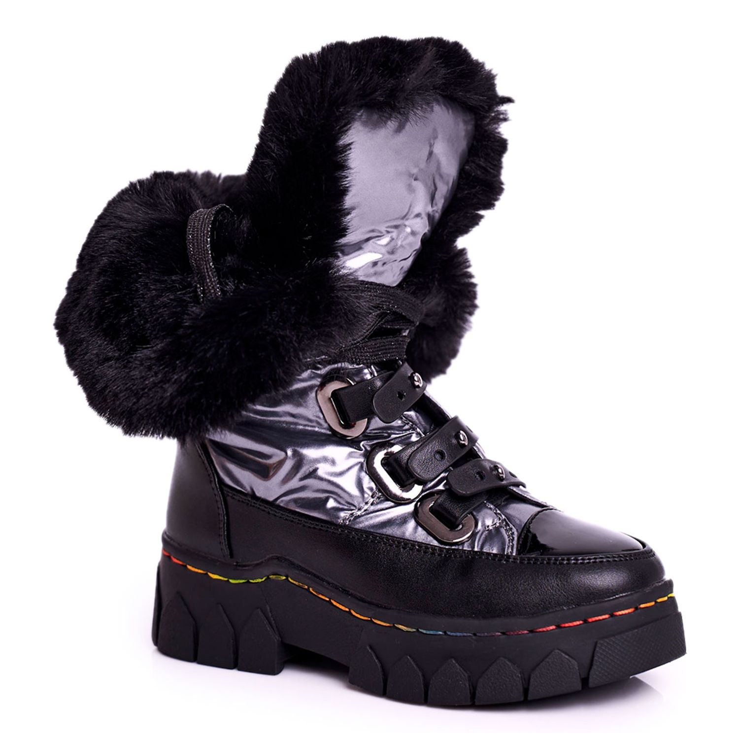 Detalhes: Apawwa Botas de neve infantis isoladas com pele preta e cinza Turismo preto