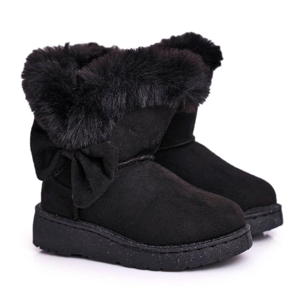 FRROCK FRROCK Botas de neve infantis Vella pretas com laço de pele preto
