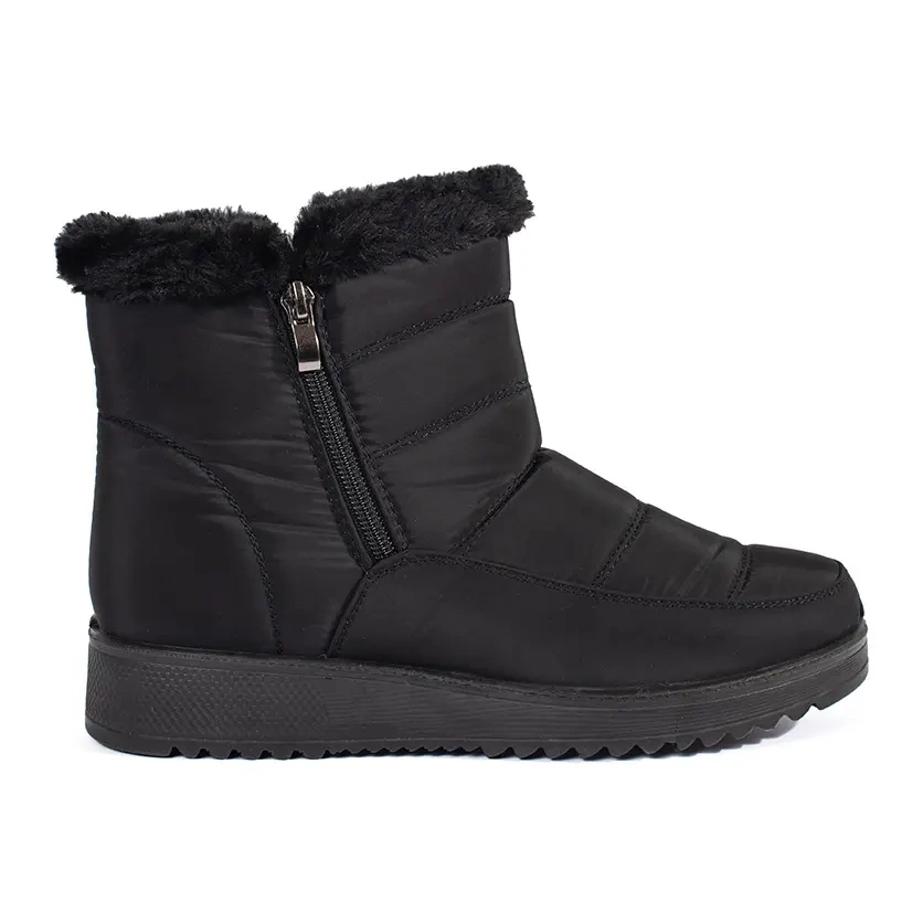 As botas de neve da luz preta foram enriquecidas com um pêlo, que não apenas aquece, mas também lhes dá um personagem único. O material externo suave sem padrão torna esses sapatos universais, combinando estilizações casuais e mais elegantes.