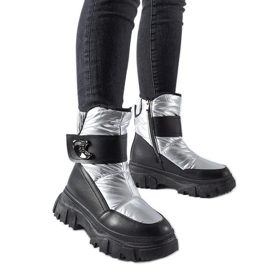 Detalhes: Botas de neve Mejia com isolamento cinza prata