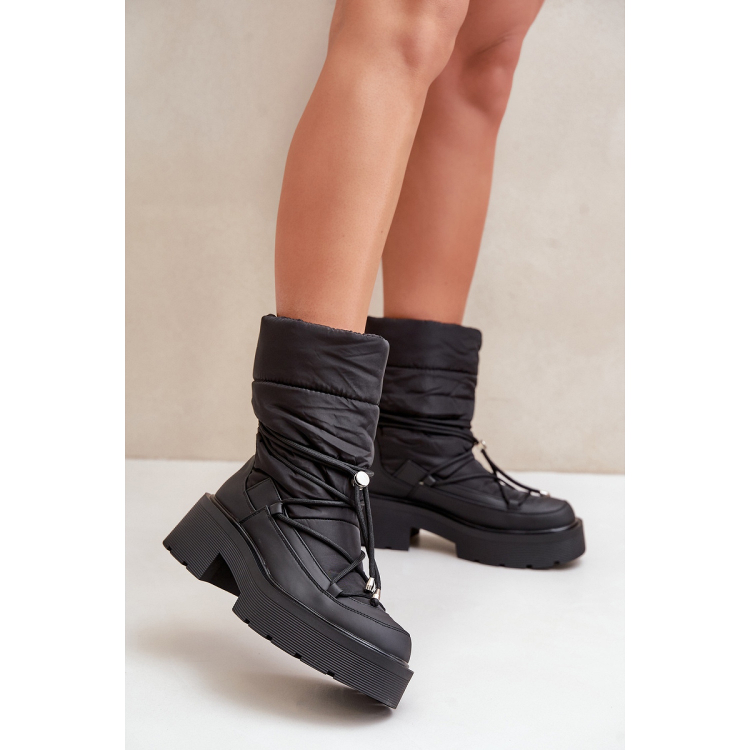 Botas de neve Modelo C-319 O preto é uma ótima opção para os dias de inverno, combinando conforto com uma aparência elegante. Esses sapatos pretos são feitos de material têxtil de alta qualidade e couro ecológico, o que garante sua durabilidade e aparência estética. Situado em uma plataforma enorme com uma altura de 3,5 cm e um salto plano, que por sua vez é de 6 cm, garante estabilidade e conforto a cada passo.