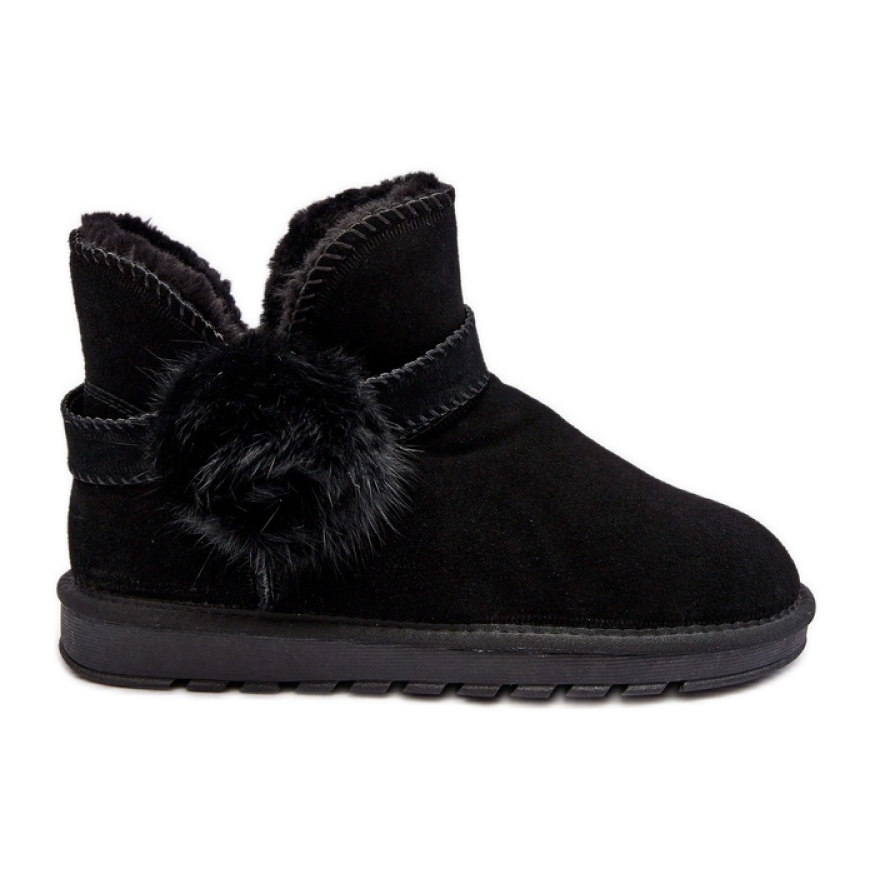 Feito de camurça natural, essas botas de neve são caracterizadas por um tornozelo, o que fornece não apenas uma aparência elegante, mas também apoio e proteção nos dias de inverno. Decorados com recortes eficazes e um cinto de tração, eles atraem atenção e se destacam de outros modelos.