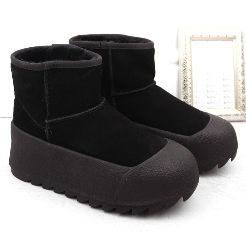 Botas de neve na grande estrela na plataforma INT2023A em Black é a escolha perfeita para mulheres que valorizam design e conforto na moda nos dias de inverno. Feito de couro natural de camurça de alta qualidade, esses sapatos são distinguidos por uma sola sólida e grossa, que efetivamente isola do frio, garantindo uma boa adesão nas superfícies escorregadias.