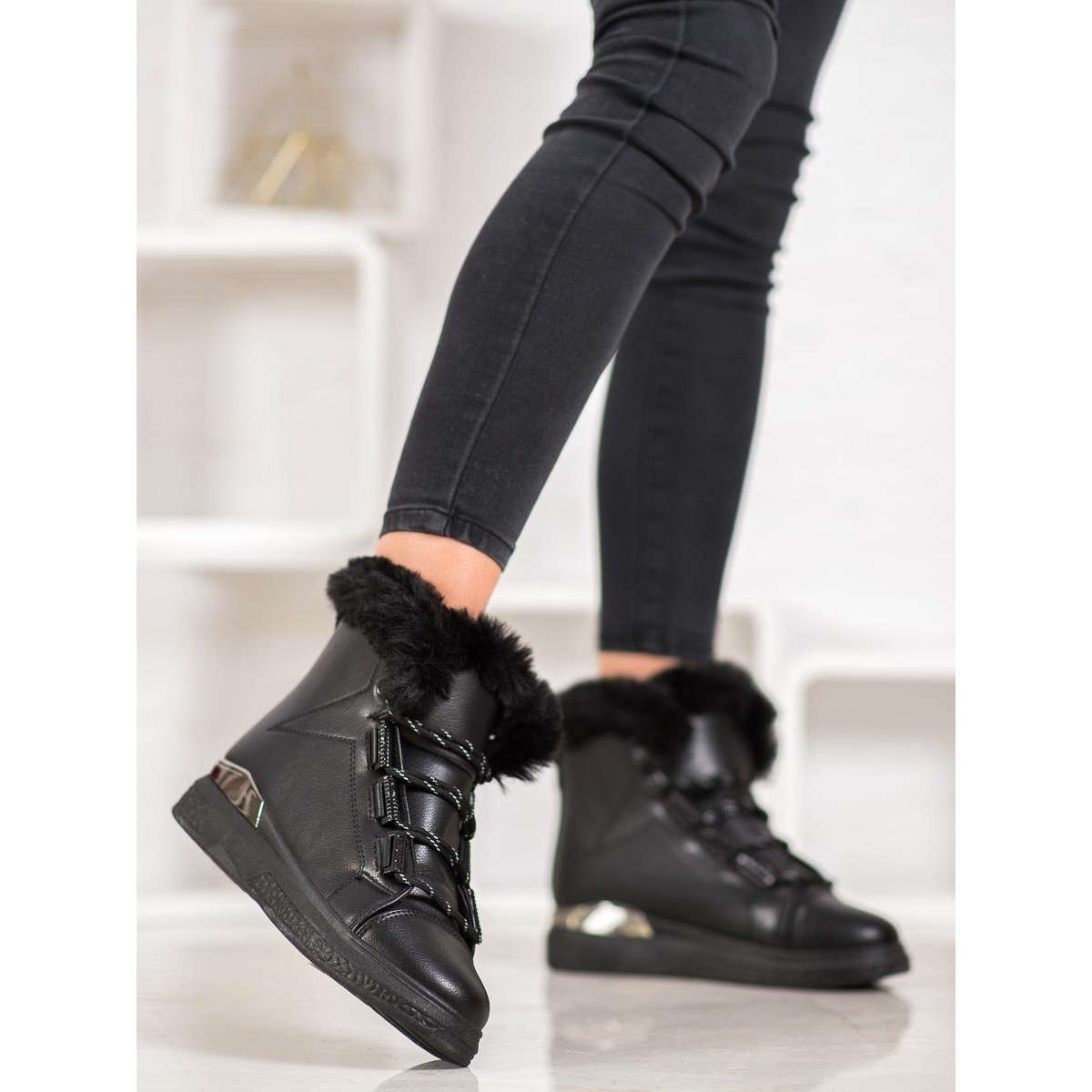 Uma vantagem adicional destas botas de neve é a capacidade de se ajustarem facilmente ao pé graças ao fecho com cordões. A cor preta faz com que estes sapatos combinem perfeitamente com vários estilos de inverno, do casual ao mais elegante.
