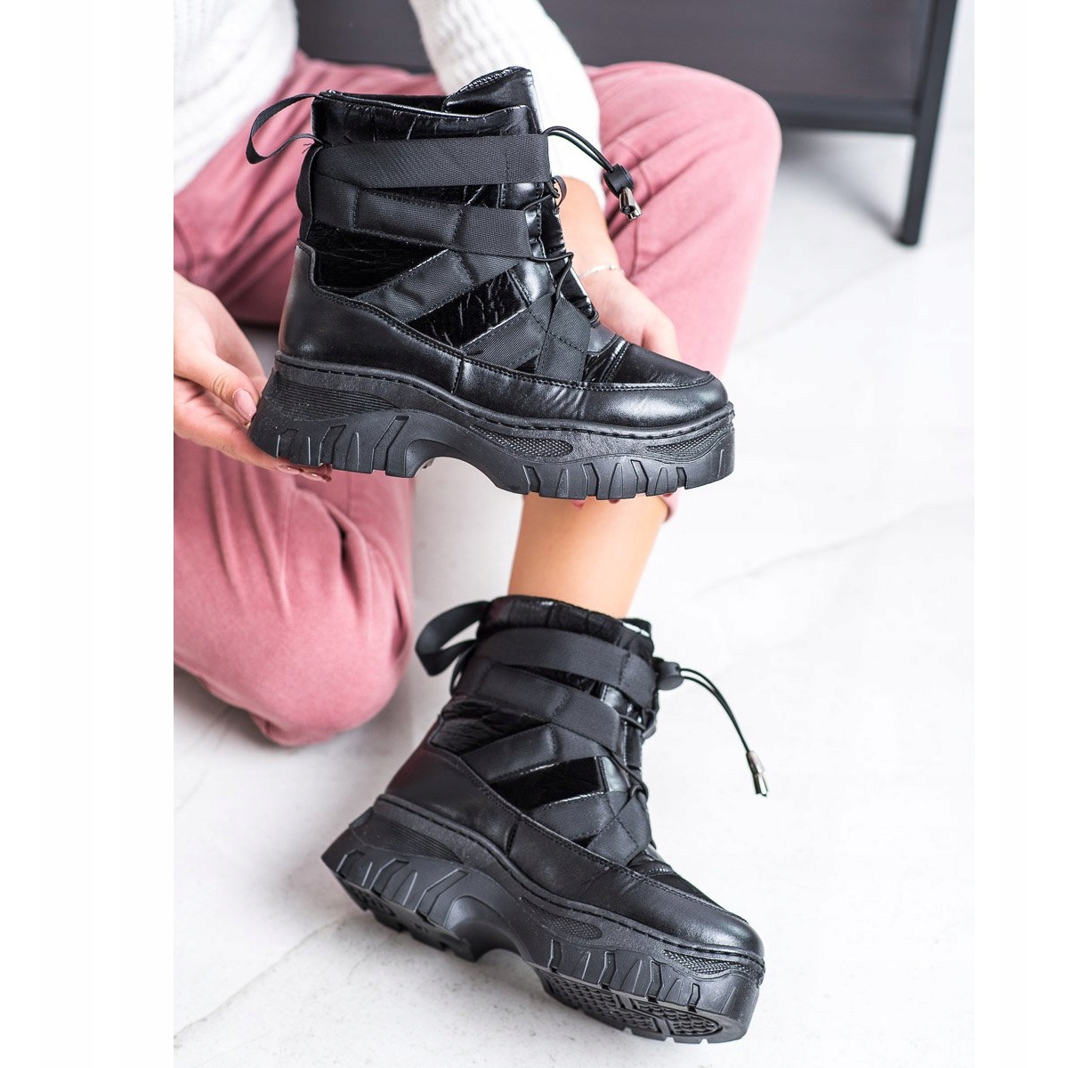 Detalhes: SHELOVET Botas de neve pretas com aquecimento preto