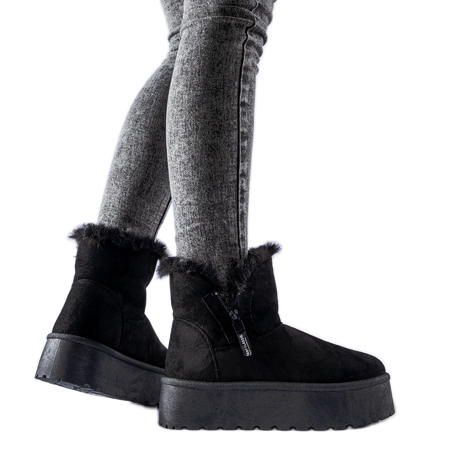 Pontos elegantes e funcionais botas de neve no Black Universal são a solução perfeita para os dias de inverno. A combinação de design da moda com soluções práticas faz com que os sapatos funcionem bem diariamente e durante as saídas urbanas. A estrutura inserida permite uma instalação rápida e o interior e o pêlo isolado garantem conforto térmico, mesmo em baixas temperaturas.