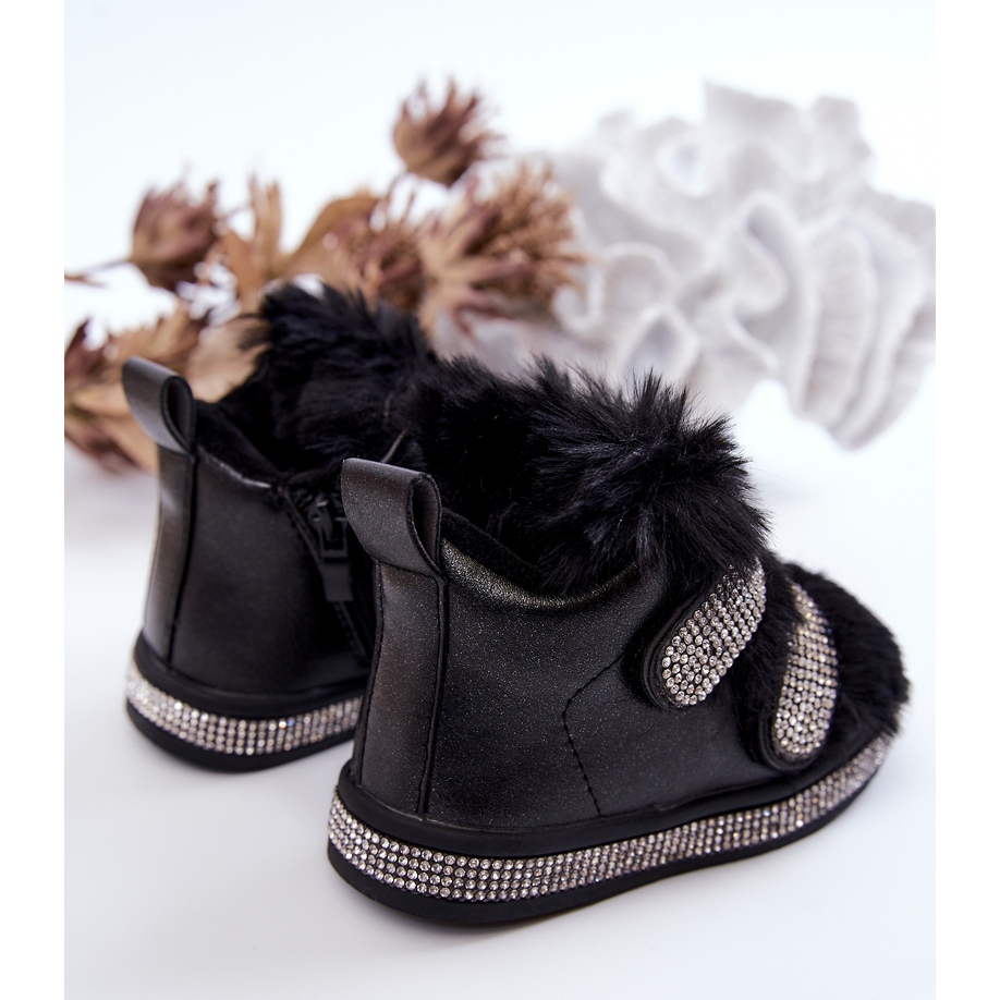 Detalhes: FR1 Botas de neve pretas de couro quente para crianças Leela pretas preto