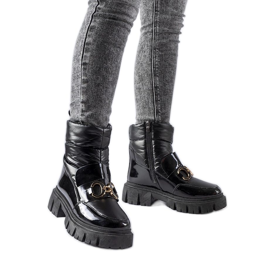 Detalhes: Botas de neve pretas envernizadas com fivela Elijah preto