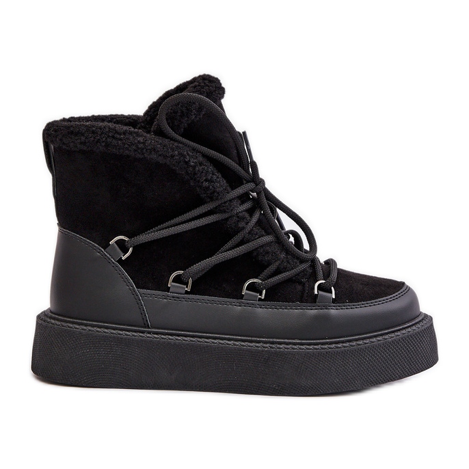 O interior deles é revestido com pêlo macio protege efetivamente os pés do frio, o que os torna a escolha perfeita em dias gelados. A encadernação frontal da moda lhes dá um personagem único, e a cor preta os faz combinar com muitas estilizações de inverno.