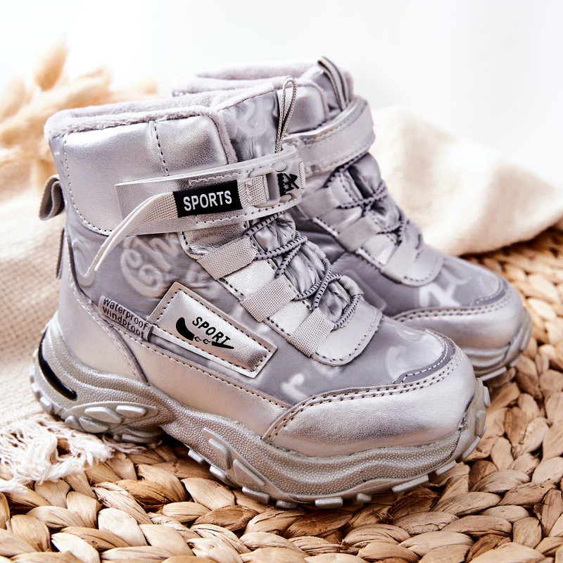 A cor prateada das botas torna-as um complemento perfeito para qualquer estilo de inverno, e interessantes elementos decorativos tornam-nas não só funcionais, mas também elegantes. Não espere mais - deixe seu filho confortável e lindo nos dias de inverno com as botas PJ2 Erila!