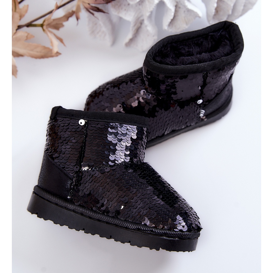FR1 FR1 Botas de neve quentes para crianças com lantejoulas lascas pretas preto