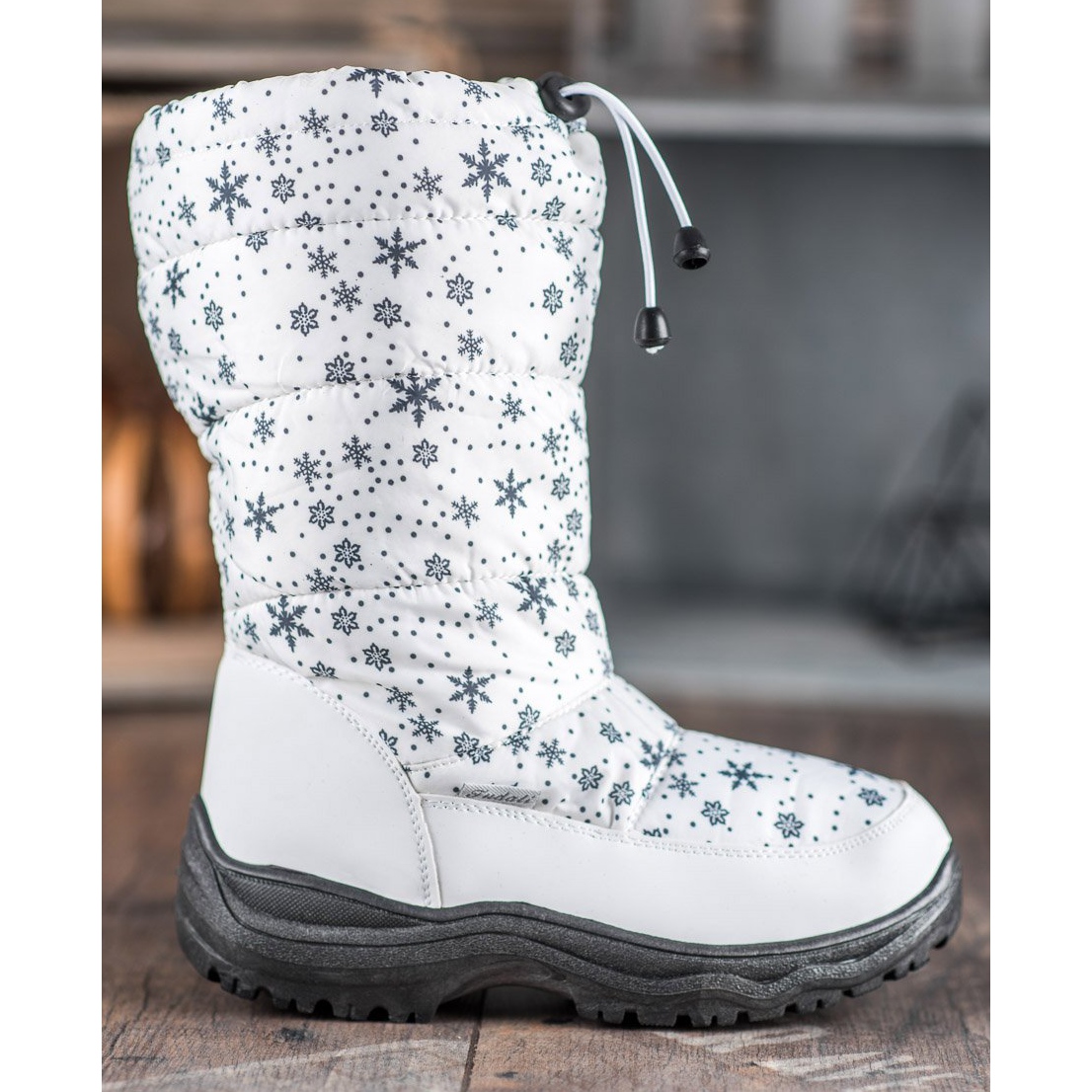 Descubra a elegância e o conforto do inverno com as quentes botas de neve SHELOVET na cor branca! Estes sapatos elegantes não são apenas práticos, mas também extremamente atraentes visualmente. Decorados com um charmoso padrão de floco de neve, eles se adaptam perfeitamente ao ambiente de inverno. A parte superior alta, atingindo uma altura de 23 a 24 cm, pode ser adaptada às necessidades individuais graças à possibilidade de ajustar a parte superior com um cordão.