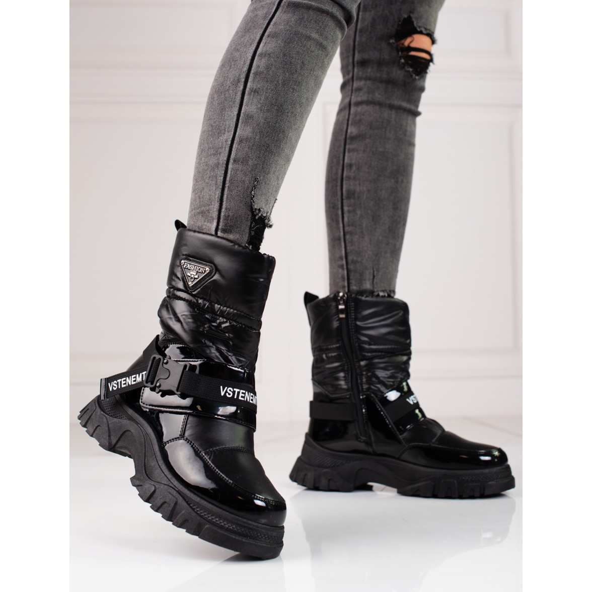 ** Botas de neve femininas SHELOVET isoladas com pele - pretas **