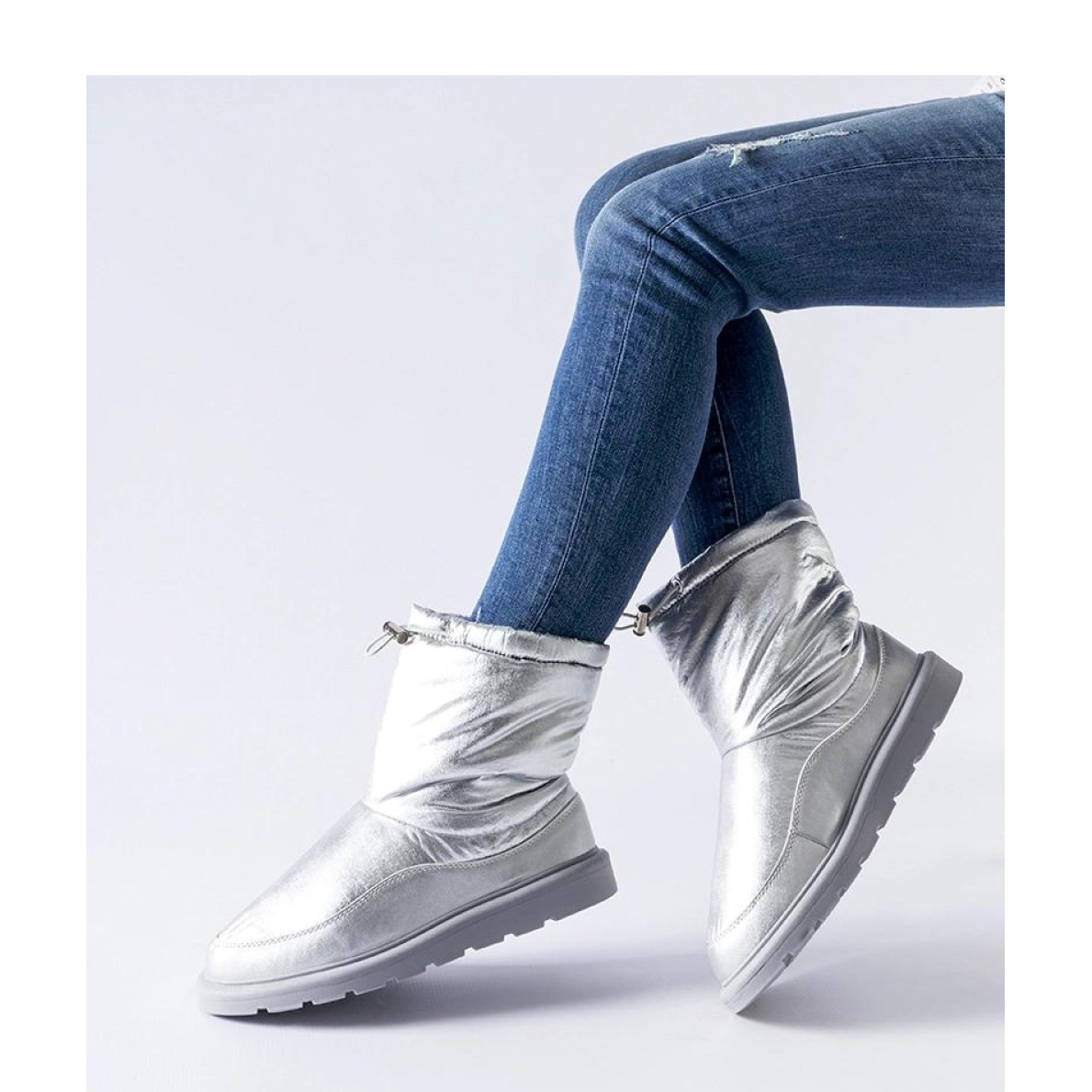 As botas de neve de prata foram projetadas para o conforto de uso. O interior isolado garante calor, mesmo nas temperaturas mais baixas, o que a torna a escolha perfeita para dias frios. Feito de tecido de alta qualidade, eles são resistentes à umidade, o que os torna ótimos em condições difíceis de inverno. Além disso, o design confortável de deslizamento permite colocar e remover rapidamente os sapatos, o que é extremamente prático no uso diário.