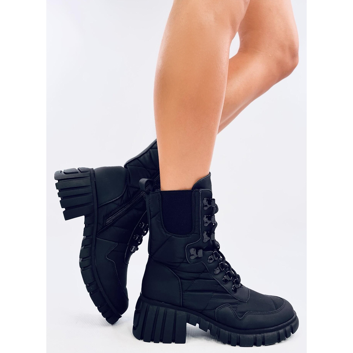 Feito de materiais de alta qualidade, incluindo tecido ecológico de couro e ortallion, as botas são distinguidas por um acolchoado espetacular, o que lhes dá um caráter moderno. Uma vantagem adicional são as pastilhas de borracha, típicas para traçadas, e um prendedor de zíper prático, o que facilita muito a colocação.