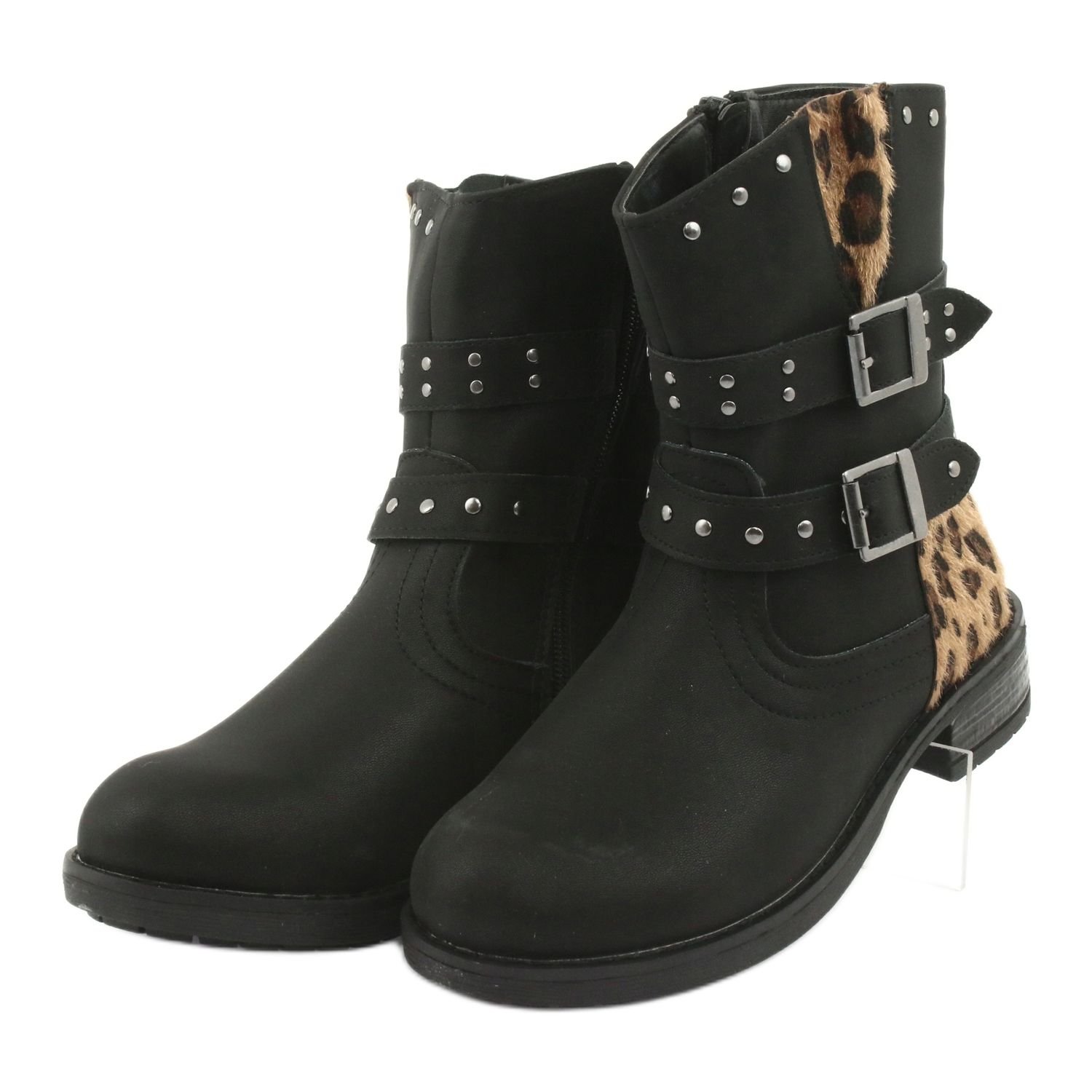 As botas pretas de leopardo com jatos American Club são a escolha perfeita para os pequenos amantes da moda. Feitos em couro ecológico de alta qualidade, estes elegantes botins combinam estilo com funcionalidade. O cabedal, com aproximadamente 16,5 cm de comprimento, com sutil estampa de leopardo, chama a atenção, e o salto de 3 cm confere conforto nas atividades do dia a dia.