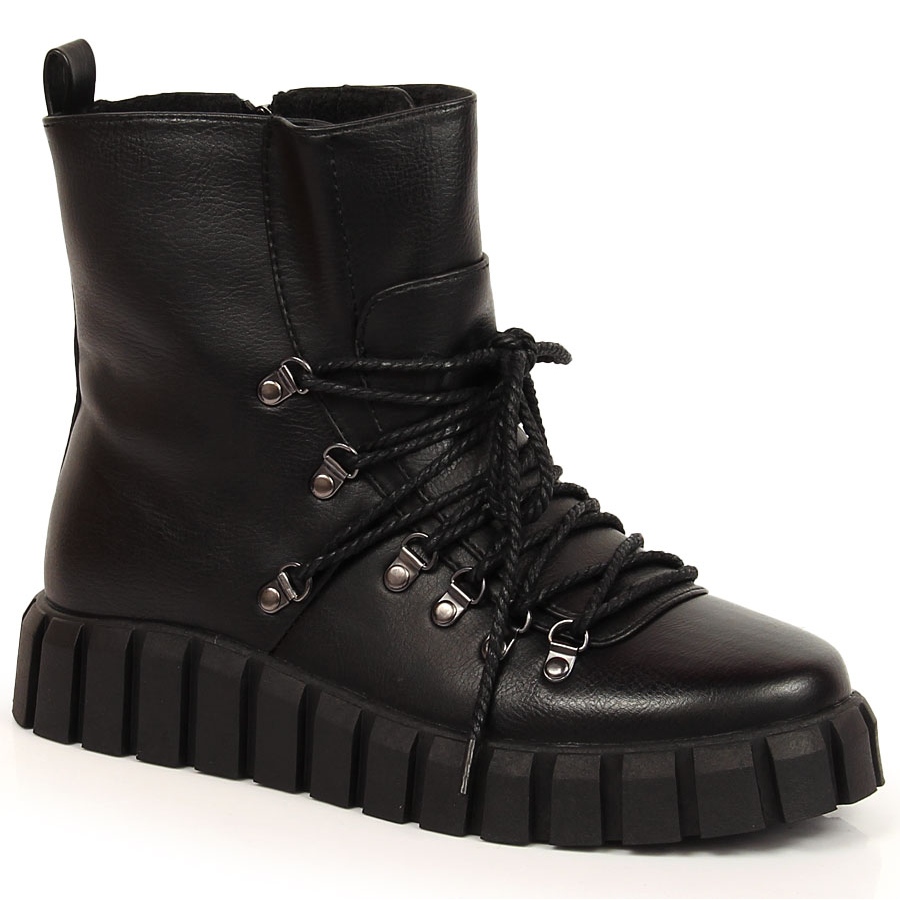 O design do calçado combina o design casual com características práticas, criando um produto tanto para o uso diário como para ocasiões especiais. As expressivas botas pretas são confeccionadas em couro ecológico de alta qualidade e complementadas por uma sola mais grossa. Detalhes sutis como zíper e cadarço facilitam o ajuste do calçado ao pé e garantem conforto de uso.
