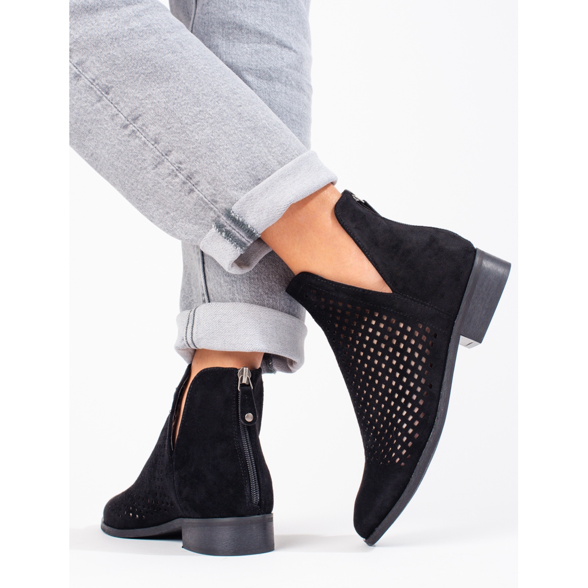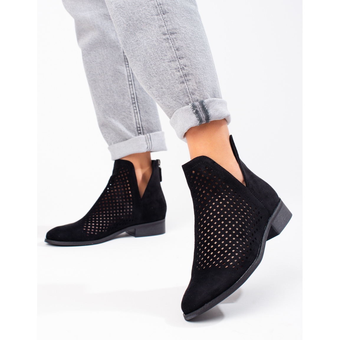 Feitas em imitação de camurça de alta qualidade, essas botas proporcionam um prazer de uso incrível e seu padrão vazado acrescenta elegância e leveza ao estilo. Graças ao calcanhar reforçado incorporado e à biqueira redonda, os pés ficam bem apoiados, o que garante conforto ao longo do dia.