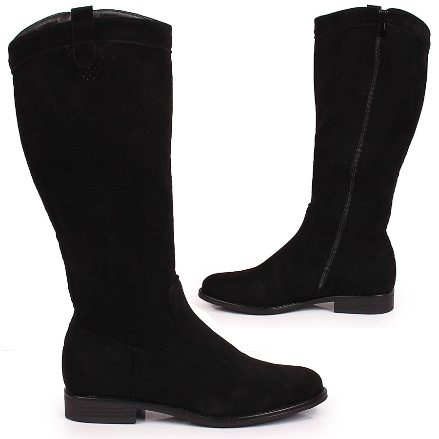 As botas têm cano de aproximadamente 35 cm de altura, o que as faz chegar até o joelho, conferindo um caráter elegante a qualquer estilo. O salto plano de 3 cm torna-os confortáveis para o uso diário e a sola de 1 cm de espessura garante estabilidade. O interior é confeccionado em um agradável tecido têxtil e a palmilha em couro ecológico, o que garante conforto mesmo por longas horas.