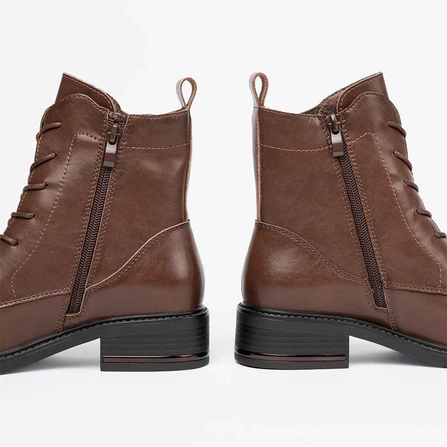 Detalhes: Botas de renda marrom com um salto baixo Sergio Leone castanho