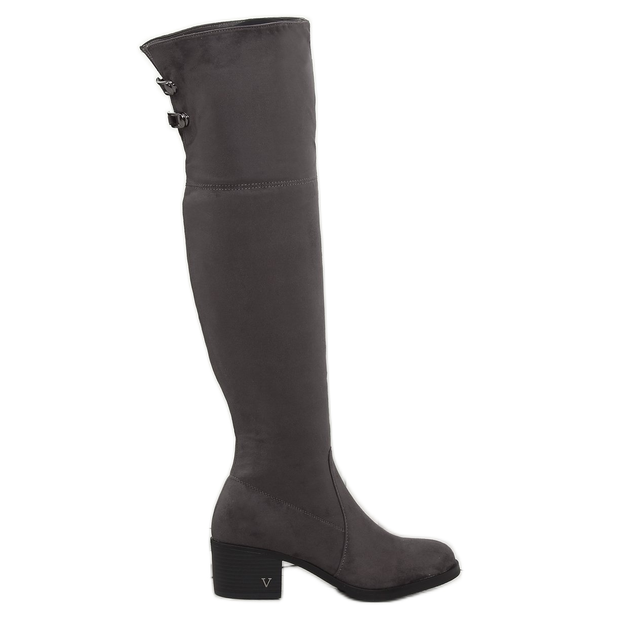 Apresentamos mules de salto alto num elegante tom de cinza - modelo BH131-HB Grey, perfeitos para todas as mulheres fashion. Estas botas femininas confeccionadas em couro ecológico camurça de alta qualidade combinam um corte clássico e soluções modernas, o que as torna uma excelente opção para os passeios de outono e inverno.