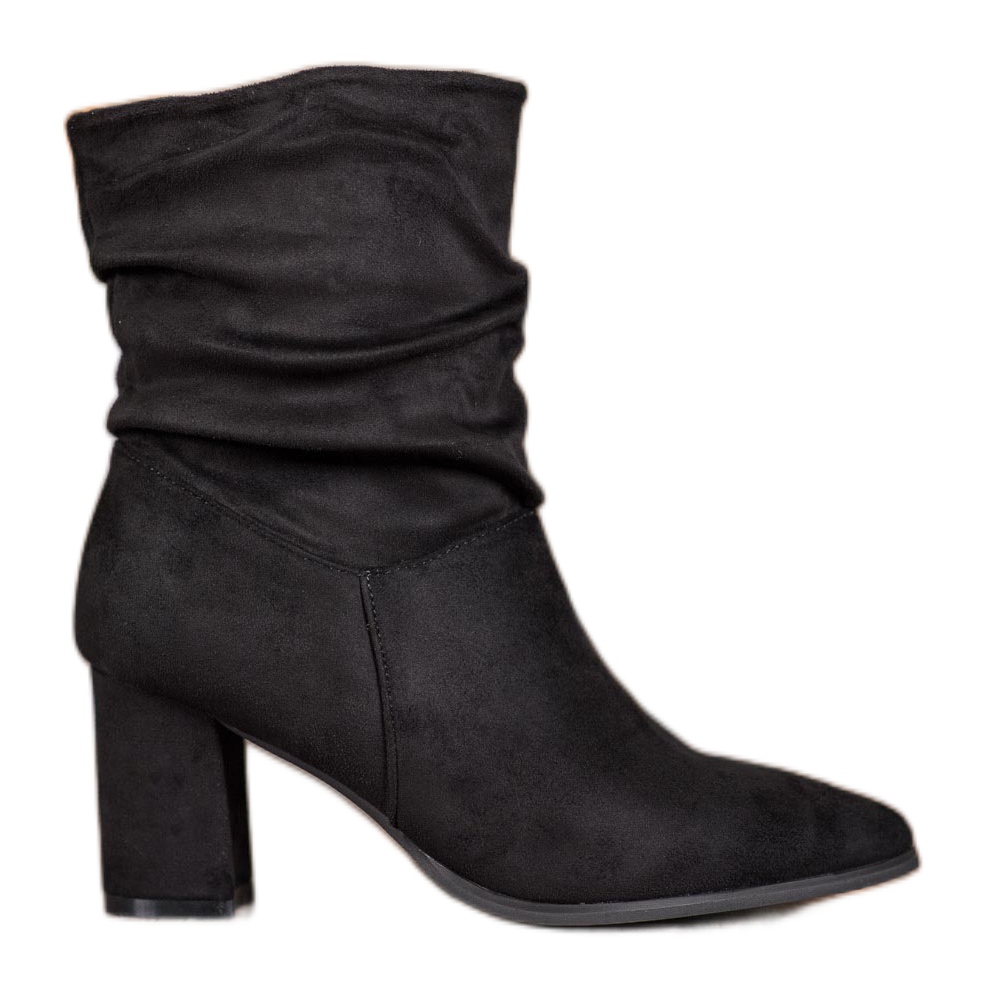 Apresentamos elegantes botins de salto alto Super Mode, que são uma excelente opção para mulheres que valorizam estilo e conforto. Confeccionados em camurça ecológica preta de alta qualidade, estes botins slip-on ficam ótimos com qualquer estilo, tanto no dia a dia como em ocasiões mais formais.
