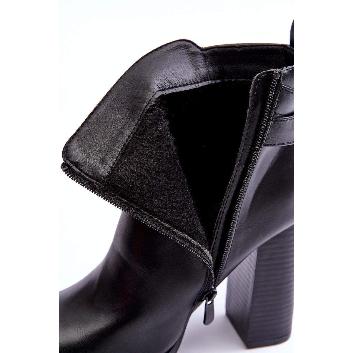 Estes botins pretos confeccionados em couro ecológico de alta qualidade não só chamam a atenção pelo seu visual expressivo, mas também garantem um conforto de uso impecável. A altura do salto de 11 cm alonga elegantemente as pernas e o espigão estável garante conforto mesmo durante o uso durante todo o dia. A calçada eficiente é possível graças ao zíper montado na lateral do cabedal, que é discreto e ao mesmo tempo funcional.