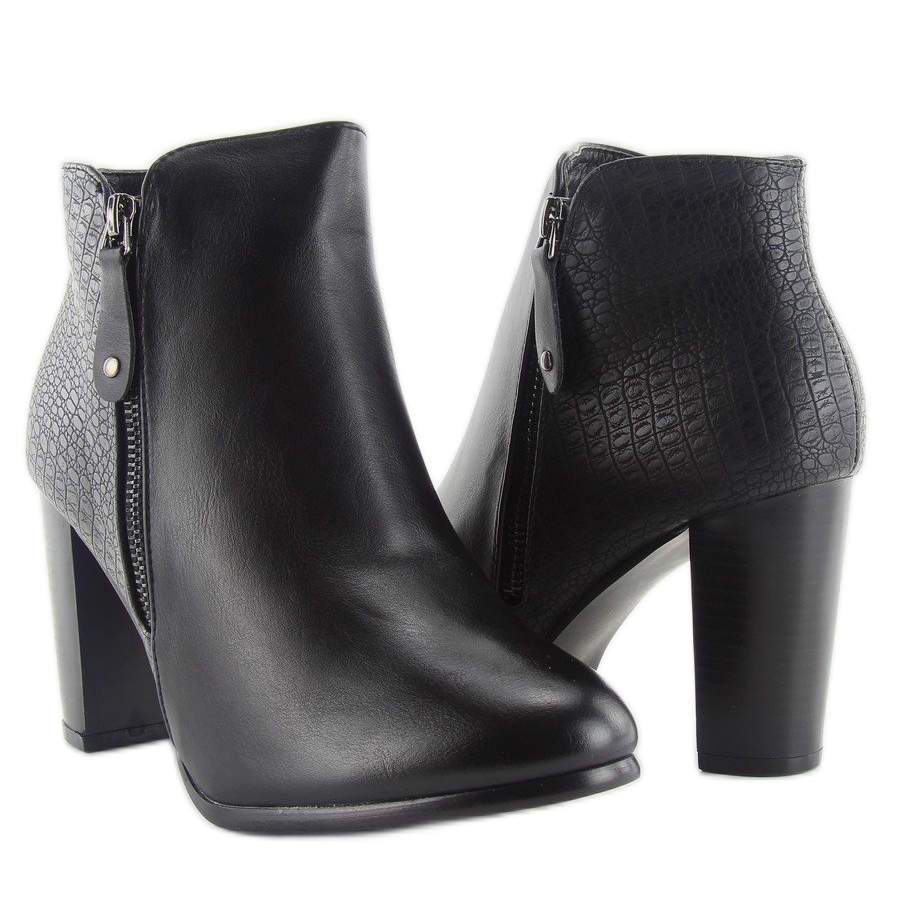 Com salto de 8,5 cm, os botins não são apenas elegantes, mas também estáveis, tornando-os confortáveis de usar por longos períodos de tempo. Confeccionados em couro ecológico de grão superior, com um interessante motivo de pele de cobra na parte posterior da parte superior, conferem um caráter único a qualquer estilo.