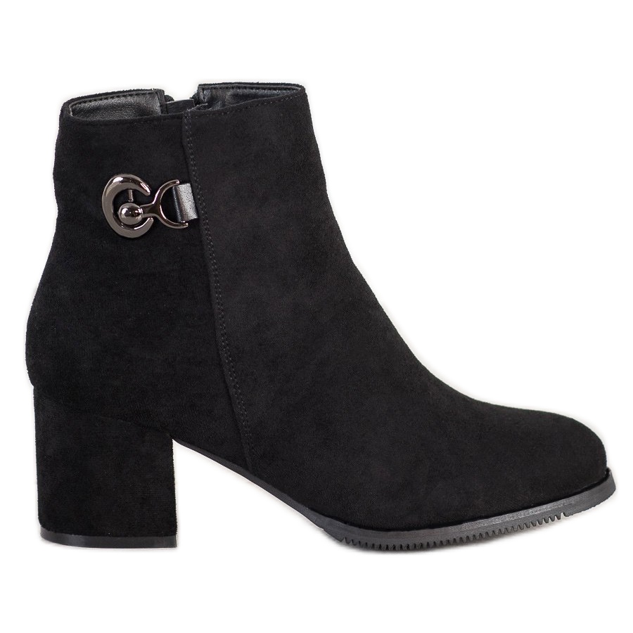 Graças à altura do salto de 6,5 cm, estas botas não só realçam lindamente a figura, mas também proporcionam estabilidade graças à sola sólida com banda de rodagem. O aquecimento os torna perfeitos para os dias mais frios do outono e inverno. A altura da parte superior acima do tornozelo e o salto macio fazem com que usá-los seja um puro prazer.