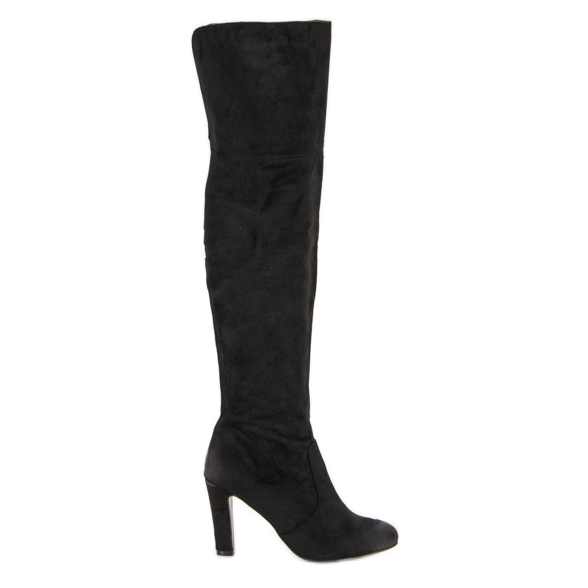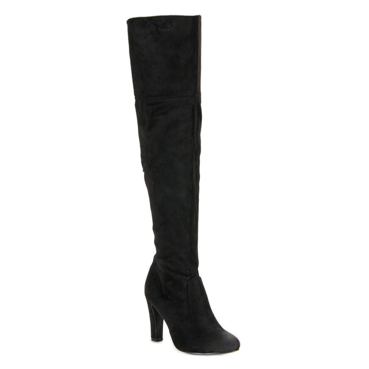 As botas VINCEZA de salto alto na cor preta são a escolha perfeita para todas as mulheres que desejam aliar elegância ao conforto. Esses sapatos estilosos apresentam um corte atemporal que nunca sai de moda. Fabricados em couro camurça ecológico de alta qualidade, são duráveis e resistentes a arranhões, o que significa que mantêm sua aparência atraente por muito tempo.