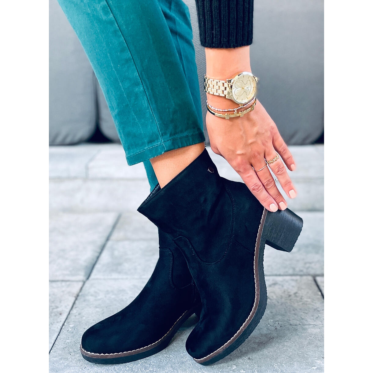 As botas se diferenciam por um corte clássico com biqueira arredondada e costuras sutis que conferem personalidade e uma expressão de estilo. Graças ao prático fecho, calçar e tirar os sapatos é rápido e cómodo. Confeccionados em camurça ecológica, estes botins combinam elegância e respeito pelo meio ambiente, e o forro de espuma garante o mais alto nível de conforto.