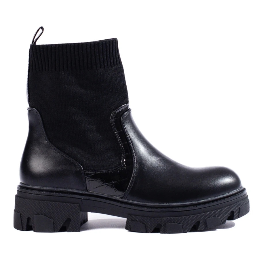 As botas elegantes e escorregadios em preto universal, feitas de couro ecológico e materiais têxteis. Perfeito para a temporada de outono/inverno - o corte casual funciona nas estilizações urbanas e diárias.