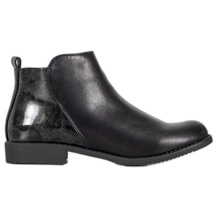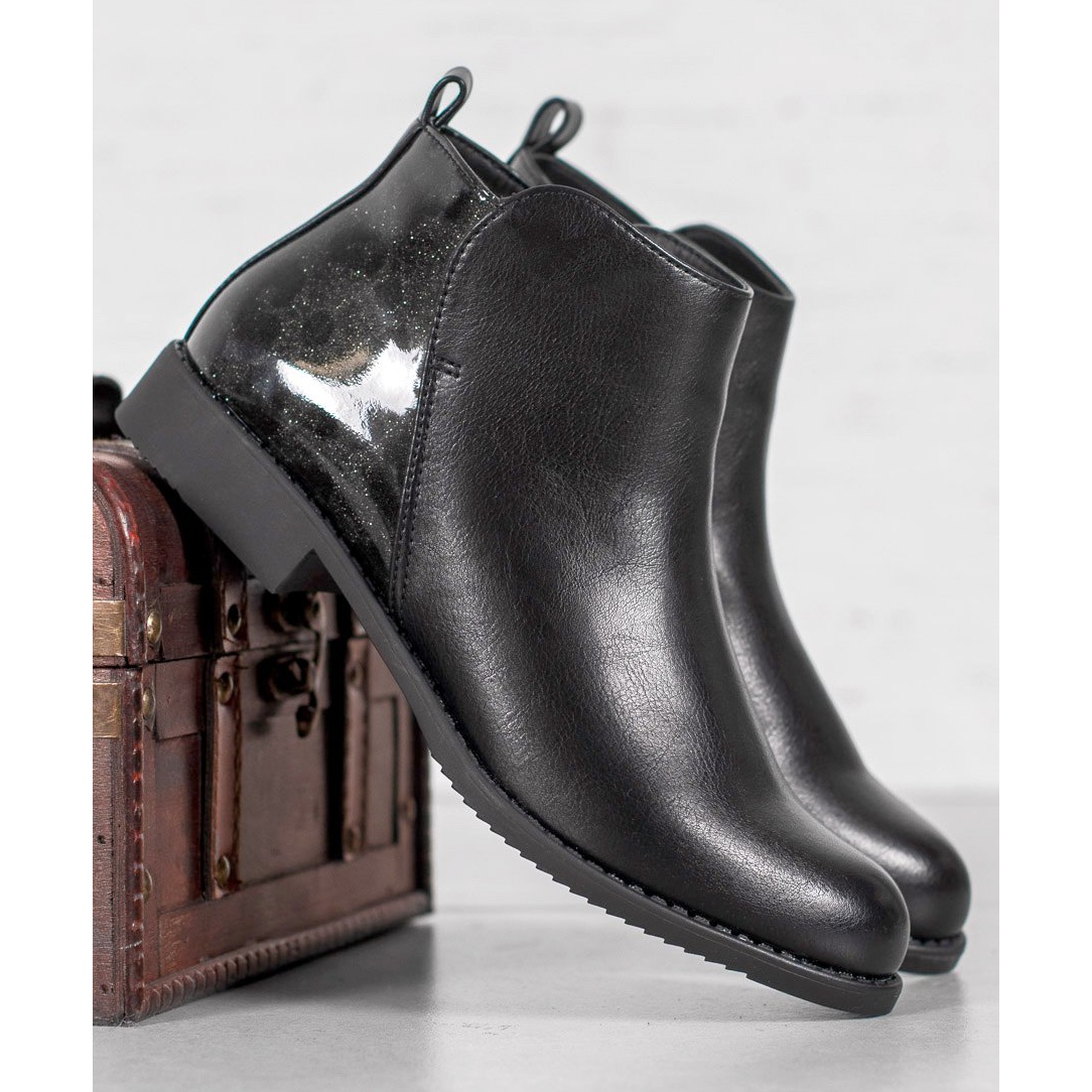 A parte superior na parte traseira, chegando acima do tornozelo, é efetivamente decorada com glitter, o que confere ao calçado um caráter único. Graças ao zíper interno, calçar e tirar o calçado é extremamente simples e confortável. A biqueira redonda e o salto largo e estável de 2,5 cm tornam as botas perfeitas para caminhadas mais longas.