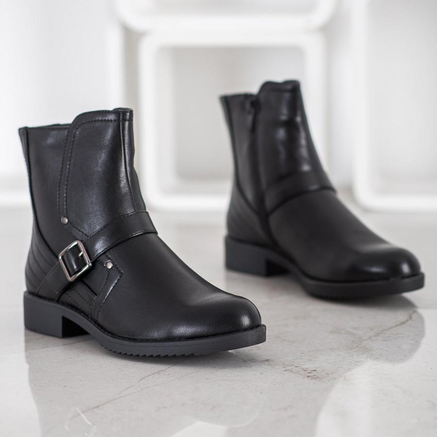 O salto plano de 3 cm de altura torna o caminhar com eles um verdadeiro prazer, mesmo em caminhadas mais longas. A parte superior até o tornozelo possui zíper na parte interna, o que facilita a colocação e a retirada do calçado. Uma vantagem adicional é uma tira decorativa com fivela, que confere ao calçado um carácter fashion.
