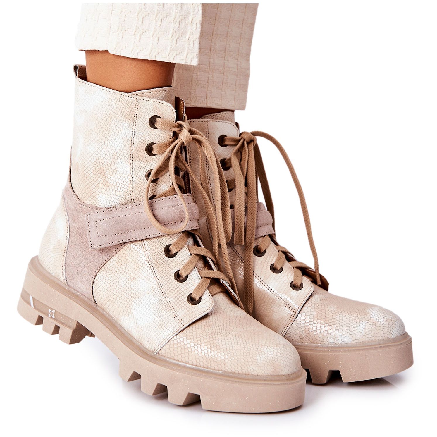 Maciejka Botas de trabalhador de couro bege Maciejka 05219-04