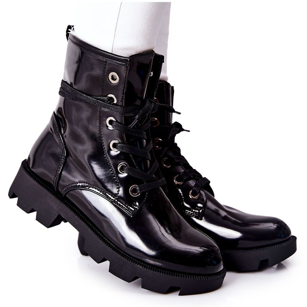 Feitas em couro envernizado de alta qualidade, as botas têm um visual impressionante e sua cor preta combina perfeitamente com uma variedade de estilos. A ponta redonda acrescenta sutileza e o cano alto, de 16 cm de comprimento, proporciona suporte adequado para o tornozelo. Graças ao salto plano, que mede apenas 3 cm, poderá desfrutar de conforto durante todo o dia.