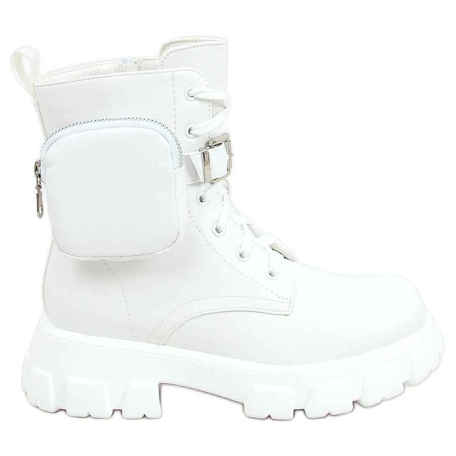 Descubra moda e conforto com botas de trabalho com bolsa, branco 7705 Branco! Estes botins femininos com atacadores são uma combinação das últimas tendências e da funcionalidade do dia a dia. Graças à bolsa removível, você obtém um toque elegante e um elemento prático para guardar pequenos itens.