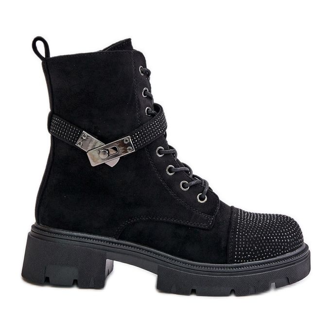 Detalhes: Botas de trabalho isoladas com decoração S.Barski HY42-281 pretas preto