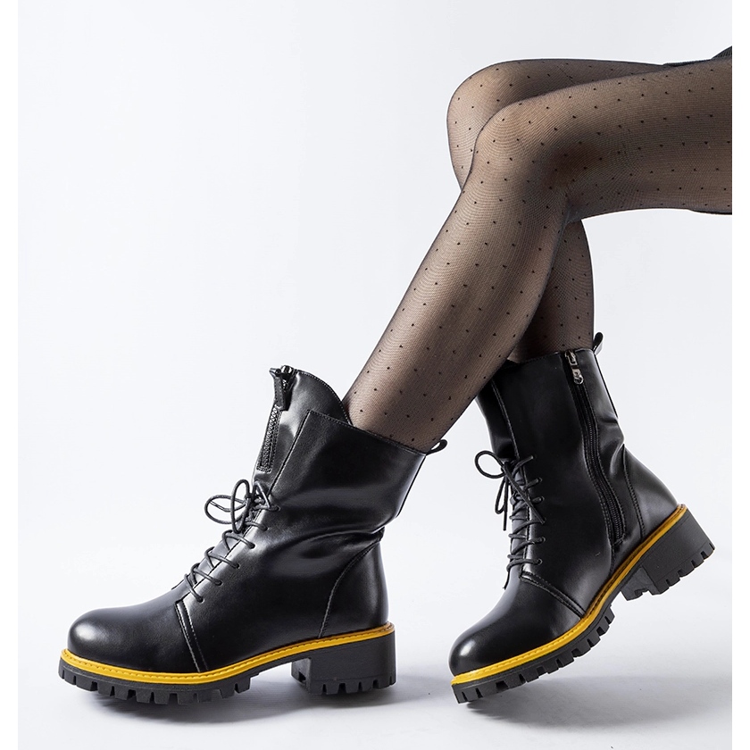 Detalhes: Botas de trabalho pretas com decoração Elisabetta amarela preto