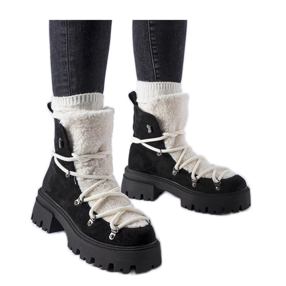 Uma das maiores vantagens desses sapatos é sua conveniência única. A inserção suave e um ajuste perfeito para o pé permitem que você desfrute de conforto o dia todo. Trabalhadores negros com pêlo são a combinação perfeita de uma aparência elegante, funcionalidade e calor, o que os torna uma ótima opção para os dias de inverno. Eles têm uma plataforma de 5,5 cm de alta, o que enfatiza ainda mais seu estilo original e conforto. Esses trabalhadores são uma ótima opção para todas as mulheres da moda que querem parecer elegantes sem deixar o conforto.